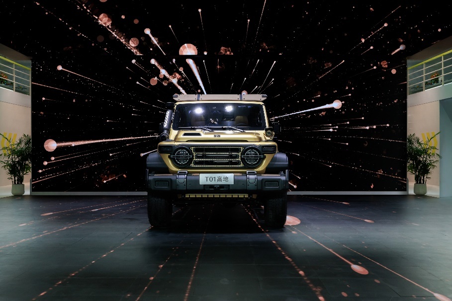 作為本次車展的重頭戲,212 T01高地的發(fā)布無疑吸引了眾多關(guān)注。這款定位為“全副武裝的性能戰(zhàn)士”的車型,針對長途穿越、戶外越野和自駕旅行等多元化場景打造,售價鎖定在20+萬元級別。從外觀上看,T01高地傳承了家族標(biāo)志性的設(shè)計元素,同時進(jìn)行了越級拓展,如專屬定制色“晨曦金”、防滑側(cè)踏板、瞄準(zhǔn)鏡式門把手等設(shè)計,既兼顧了功能性又彰顯了視覺張力。