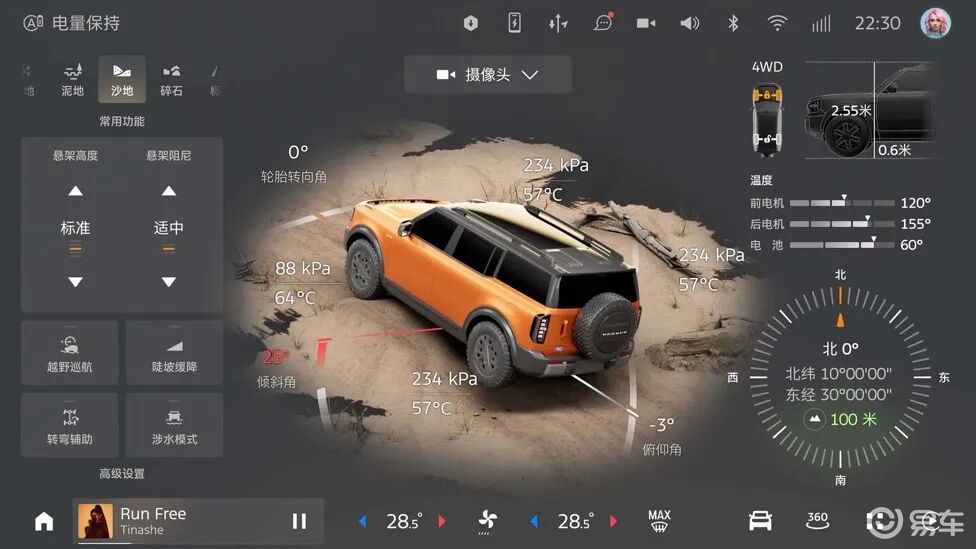 傳承福特烈馬家族的硬核基因,福特智趣烈馬是同級唯一配備前后電控、機械差速鎖的方盒子新能源SUV車型,全系標配四驅,增程版更配備了同級唯一的前后電控機械差速鎖,獨創(chuàng)行進中上鎖功能,且不限速,脫困無比從容。即便是越野新手,在激光雷達、360°攝像頭和底盤傳感器、同級唯一的70英寸超大AR-HUD抬頭顯示系統(tǒng)加持下,福特智趣烈馬的越野360系統(tǒng)可實時感知車身姿態(tài),提前預警俯仰/側傾角風險,大大提升安全性。更重要的是,在福特豐富的越野生態(tài)系統(tǒng)支持下,福特智趣烈馬更具備同級唯一的智能旅行路書功能,支持酷炫3D衛(wèi)星地圖導航和路書智能推薦沿途興趣點、最美拍攝地甚至無人機拍攝點,更可以語音實時播報,遇到路途中的美景,福特智趣烈馬也可聯(lián)動車身攝像頭和傳感器,隨時記錄分享,讓每一次探索都充滿驚喜。