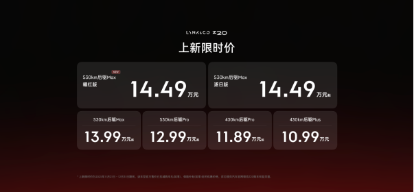 在廣州車展的聚光燈下,領克Z20 530km后驅Max曜紅版以一場融合科技與美學的盛宴正式登場。這款被定義為“智趣駕享純電SUV”的新車,以14.49萬元的上新限時價開啟預售,同步推出購車禮、金融禮、煥新禮等多重權益,更針對2025年11月21日至12月31日期間鎖單并提車的前200名用戶,贈送價值666元的聯名電氣燈,將精致出行體驗延伸至生活細節。