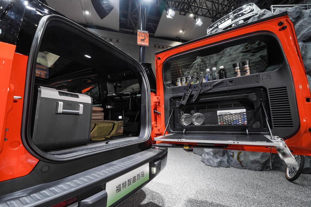 戶外場景下,福特智趣烈馬化身移動生活空間。行業唯一的電動36厘米舉升車頂10秒內自動升起,一鍵成床功能營造Loft式休憩空間;全系標配6.6kW對外放電能力,支持多電器同時使用;497L后備箱搭配原廠鋁合金桌板秒變戶外廚房,7.5L冷暖冰箱(-6℃至50℃)、B柱出風口與C柱充電口構建完整露營生態。