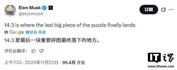 特斯拉首席執行官埃隆?馬斯克近日透露,在向用戶推送FSD v14.2版本僅數小時后,便公開預告了即將到來的重大更新——v14.3版本。他形容這一版本將是“關鍵拼圖最終就位”的里程碑,暗示系統性能將迎來質的飛躍。