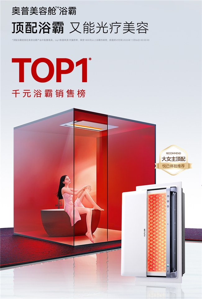 雙11的成績單,是奧普32年積淀的必然結果,更是品牌引爆浴室經濟的新起點。面對中產家庭對衛浴生活的更高期待,奧普將繼續深耕技術創新,拓展場景邊界,以技術創新與優質服務為紐帶,用熱能環、美容艙、線性浴霸等高端產品線持續激活消費需求。從單一取暖工具到衛浴生活解決方案,奧普正以產品力重構浴室場景價值,讓“品質衛浴”成為家庭消費新熱點——這,正是奧普領跑行業、引爆浴室經濟的核心密碼。