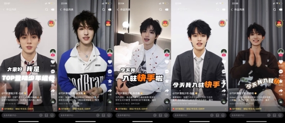 從五位少年入駐后的首條視頻中也不難看出,視頻中的他們分別用具有個人特色的方式與粉絲打招呼。帥氣滿格的@TOP登陸少年-朱志鑫,開啟#五鑫級推薦#特別企劃;歡樂源泉@TOP登陸少年-張澤禹,帶來#禹宙漫游指南#音樂日記;魅力爆表的@TOP登陸少年-張極,開啟#極時熱線#心動營業;溫暖陽光的@TOP登陸少年-左航在超燃節奏中為粉絲送出專屬#航向指南#;氣場全開的@TOP登陸少年-蘇新皓,則打開#皓萊塢時間# 啟動物料高能放送。