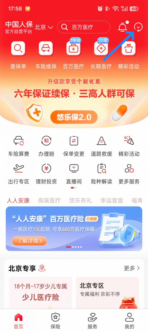 以中國人保APP為例,記者實測發現,雖然其首頁承載了包含健康、汽車、生活在內的龐大內容生態,但在屏幕右上角設置了智能客服入口。這一設計遵循了用戶在移動互聯網時代養成的通用交互習慣。