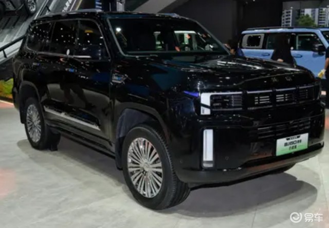 外觀方面,新車延續了大氣穩重的整體風格,但通過細節調整展現出更精致的視覺效果。前臉采用封閉式設計,五孔式格柵由燈組構成,與家族其他車型形成設計呼應。相較于現款車型,行政版取消了高光黑色裝飾件,轉而采用鍍鉻元素點綴前翼子板仿進氣口、車門拉手及側裙飾條。輪轂升級為20英寸密條輻鍍鉻樣式,尾部標識改為金色鍍鉻處理,外掛式備胎罩融入雪山圖案與藏文元素,左側C柱區域新增專屬標識,強化了車型的獨特性。