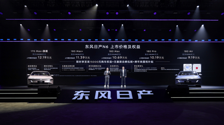 東風(fēng)日產(chǎn)近日推出全新插混轎車N6,憑借三大核心優(yōu)勢(shì)——王牌產(chǎn)品力、越級(jí)智能配置與央企合資品質(zhì),為中高級(jí)插混市場(chǎng)樹立新標(biāo)桿。新車共發(fā)布5個(gè)版本,官方指導(dǎo)價(jià)9.99萬(wàn)至12.99萬(wàn)元,12月15日前訂購(gòu)可享限時(shí)權(quán)益價(jià)9.19萬(wàn)至12.19萬(wàn)元,疊加超級(jí)置換金與定購(gòu)禮后性價(jià)比進(jìn)一步凸顯。
