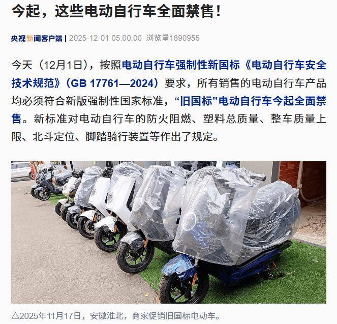 針對舊國標車輛的處理問題,專家表示,已上牌的不符合新國標的車輛不會強制淘汰;已購買但未上牌的舊國標電動車需在2025年11月30日前完成登記。對于舊車維修,各大企業已承諾至少持續5年提供維修服務和零部件供應。