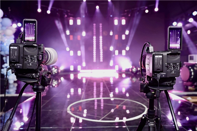 針對(duì)時(shí)拍傳媒的唱跳團(tuán)播場(chǎng)景,佳能“佳直播”為其量身定制了三機(jī)位娛樂團(tuán)播解決方案,采用2臺(tái)佳能EOS C80搭配RF70-200mm F2.8 L IS USM Z鏡頭,分別承擔(dān)主機(jī)位和特寫機(jī)位,另用1臺(tái)佳能EOS R5 Mark II搭配RF24-70mm F2.8 L鏡頭作為游機(jī)位。主機(jī)位負(fù)責(zé)拍攝整體舞臺(tái)的質(zhì)感和氛圍,特寫機(jī)位負(fù)責(zé)捕捉主播細(xì)膩的表情瞬間與動(dòng)作細(xì)節(jié),游機(jī)位則通過多樣化的“花式”運(yùn)鏡,帶來具有沖擊力的動(dòng)感臨場(chǎng)視角,有效提升用戶停留時(shí)長(zhǎng)。