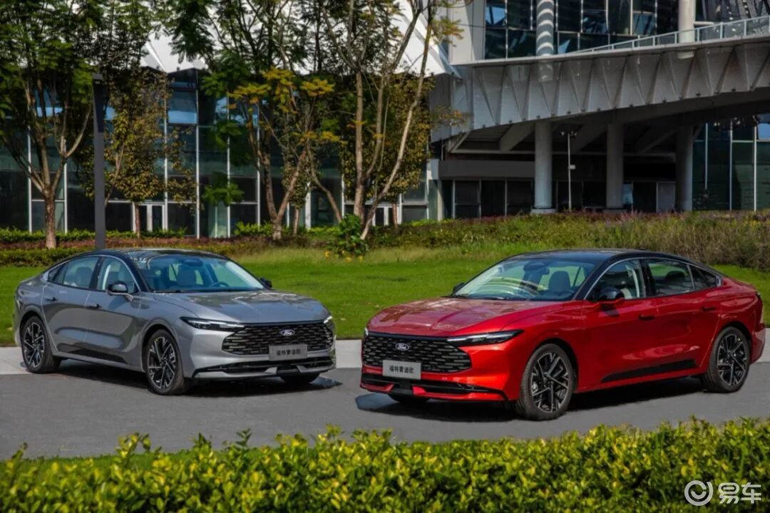 外觀方面,新車前臉造型經過重新雕琢,分體式大燈組被三條細長棱柱燈帶取代,搭配立體梯形格柵與"Ford LED"標識,視覺效果更具科技感。前包圍新增分段式擾流設計,配合新增的"赤霞紅"與"滄海藍"車身配色,運動氣質顯著提升。車身側面延續溜背式輪廓,隱藏式門把手與19英寸輪圈的組合,既降低了風阻又增強了時尚感。尾部設計則通過"三柱型"尾燈與黑色后包圍的搭配,營造出簡潔大氣的視覺效果。尺寸方面,新車長寬高分別為4935/1875/1500mm,軸距達2945mm,空間表現處于同級領先水平。