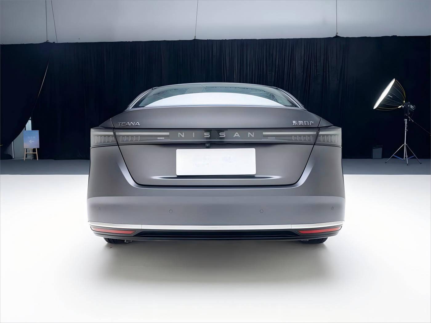 車尾造型經過重新設計,最引人注目的是全新貫穿式尾燈組。雖然中間段采用封閉式處理,但兩側燈帶點亮后視覺效果極具科技感。日產品牌標識被替換為可點亮的字母LOGO,嵌入尾燈中央位置,夜間辨識度大幅提升。底部采用隱藏式排氣布局,搭配貫穿式鍍鉻裝飾條,使車尾整體更顯簡潔大氣。相較于現款車型,新設計在保持運動感的同時,增添了幾分優雅氣質。