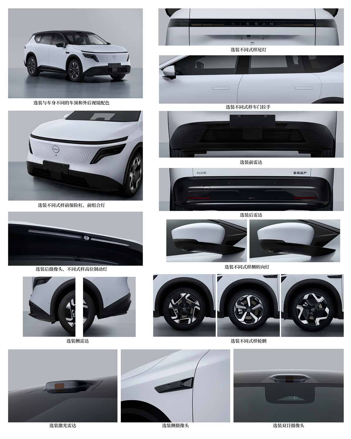 從外觀設計來看,NX8車身側面線條簡潔流暢,采用平直設計以優化內部空間,同時配備隱藏式車門把手,提升整體科技感。車尾部分,貫穿式燈帶與“NISSAN”標識相結合,形成獨特的視覺標識。增程版與純電版在外觀上差異不大,僅通過輪圈樣式進行區分,體現了設計上的一致性。