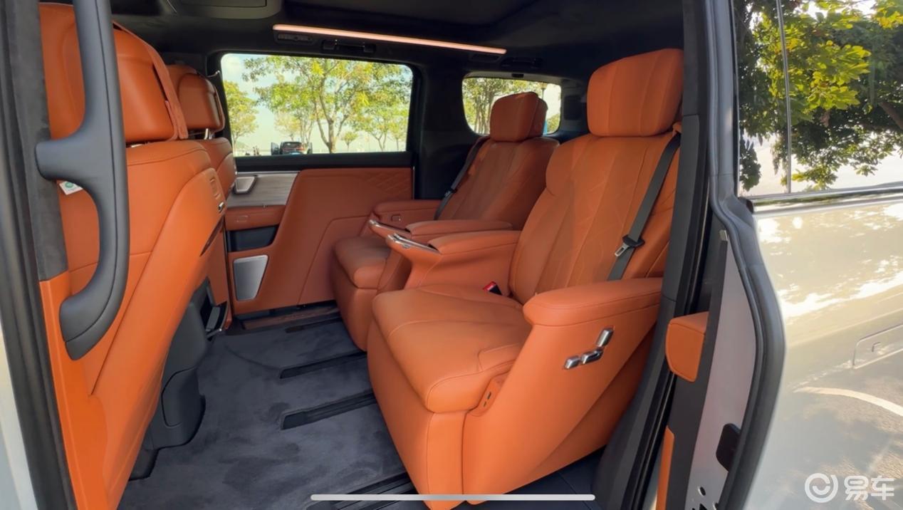 車內(nèi)空間以“移動頭等艙”為標(biāo)準(zhǔn)打造,三排座椅均采用懸浮層技術(shù)——在Nappa真皮下方嵌入觸感優(yōu)化填充層,配合超纖麂皮絨車頂與澳洲羊毛地毯,構(gòu)建出越級豪華氛圍。二排配備兩張零重力座椅,支持多向電動調(diào)節(jié)與一鍵躺平功能,實(shí)測180cm身高乘客在二排保留兩拳腿部空間時,三排仍能獲得同等舒適度,真正實(shí)現(xiàn)“全艙平等”體驗(yàn)。車頂懸浮式21英寸4K娛樂屏支持三屏聯(lián)動,并獲得萊茵護(hù)眼認(rèn)證,配合二三排分段式1.1米護(hù)眼燈帶(南德認(rèn)證),為后排乘客提供全方位健康關(guān)懷。