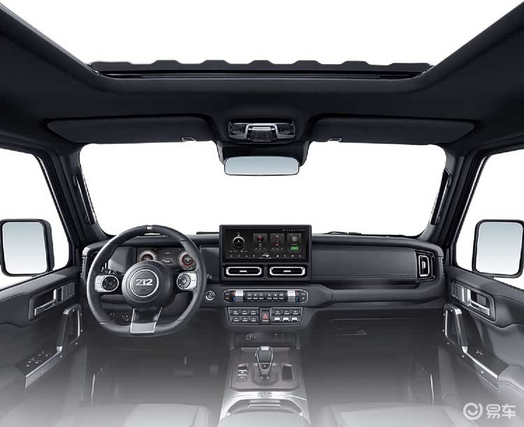 從外觀設計來看,212 T01長風柴油版延續了經典復古的硬派風格。隆起通風口機蓋搭配加寬中網,再加上鐵質保險杠,整車造型硬朗且富有力量感。為了滿足不同消費者的需求,該車還提供12000磅隱藏式絞盤和高位涉水喉作為選裝配置。在越野性能參數方面,它依托非承載式車身以及前后五連桿整體橋懸架,接近角達到43°,離去角為36°,最小離地間隙256mm。若選裝涉水喉,涉水深度可高達910mm,這樣的數據足以應對各種復雜路況。