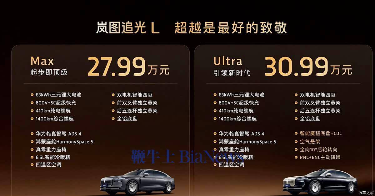 嵐圖汽車旗下全新旗艦轎車——追光L今日正式登陸市場,推出Max版與Ultra版兩款車型,售價分別為27.99萬元和30.99萬元。作為品牌年度重磅產(chǎn)品,新車以“東方旗艦美學(xué)”為設(shè)計語言,將文化底蘊與尖端科技深度融合,旨在重新定義中國高端豪華轎車的價值標(biāo)準(zhǔn)。
