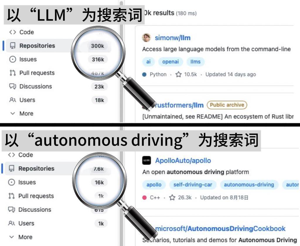 在智能駕駛領域,開源與閉源的技術(shù)路線之爭持續(xù)引發(fā)關(guān)注。以視覺語言動作模型(VLA)為例,不同技術(shù)路徑的競爭格局正逐步顯現(xiàn)。數(shù)據(jù)顯示,以特定中文詞匯為關(guān)鍵詞的代碼倉庫數(shù)量達30萬個,而以“autonomous driving”為關(guān)鍵詞的代碼倉庫不足1萬個,二者規(guī)模差距近40倍。這種差異不僅體現(xiàn)在開源生態(tài)的活躍度上,更折射出全球技術(shù)發(fā)展的地域性特征。
