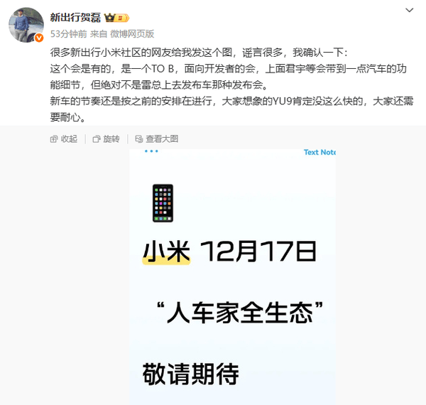 盡管活動期間可能會有相關(guān)負責(zé)人對汽車功能細節(jié)進行簡要說明,但備受外界期待的小米第三款車型——首款增程式大型SUV YU9,大概率不會在此次活動中正式亮相。該車型目前仍按照既定的開發(fā)計劃穩(wěn)步推進。