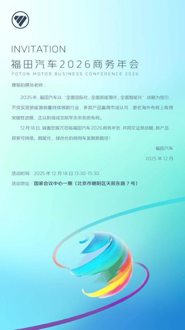 12月18日福田汽車2026商務年會啟幕,多款新品將亮相引領行業新價值