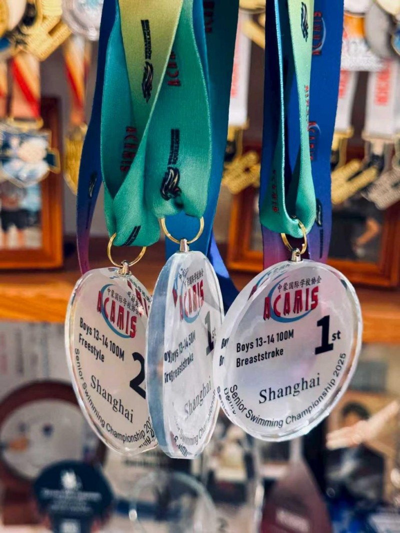 為期三天的 ACAMIS Senior Swimming Championship 5-7 December, 2025 Shanghai 中蒙國際學校協會,國際學校體育聯合會游泳錦標賽)于2025年12月5日至7日在上海惠靈頓外籍子女學校圓滿落幕。來自上海耀中外籍子女學校的選手阮童恩(Tony Ruan)表現驚艷,在男子蛙泳與自由泳項目中強勢突圍,最終斬獲兩枚金牌和一枚銀牌,為學校贏得榮譽。