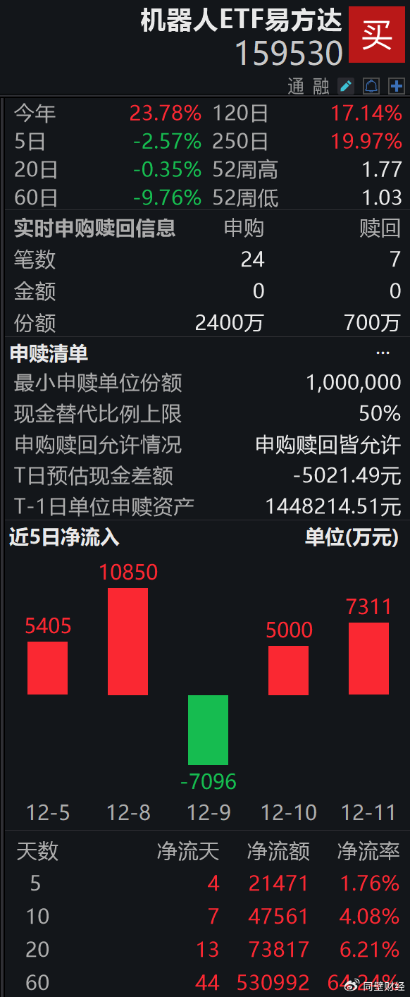 機器人ETF易方達盤中吸金力強 獲1700萬份凈申購 產業前景受關注