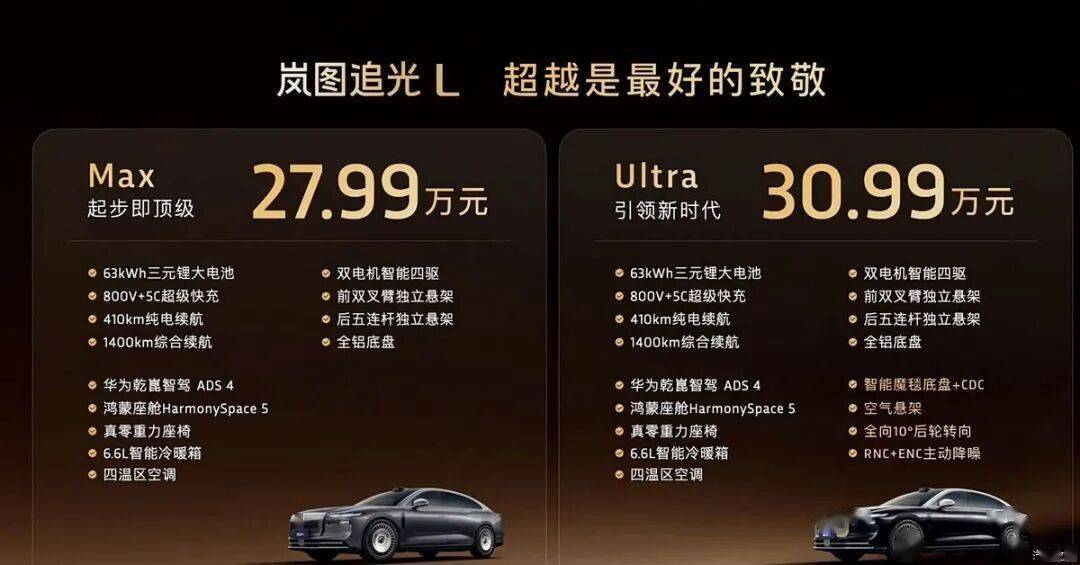 近日,嵐圖品牌旗下全新中大型插電混動轎車——嵐圖追光L正式登陸市場,共推出Max與Ultra兩款配置車型,官方指導價區間為27.99萬至30.99萬元。這款新車憑借超過5.1米的車身長度、800V高壓架構以及華為乾崑智駕ADS 4系統等核心配置,成為中大型轎車領域的新焦點。