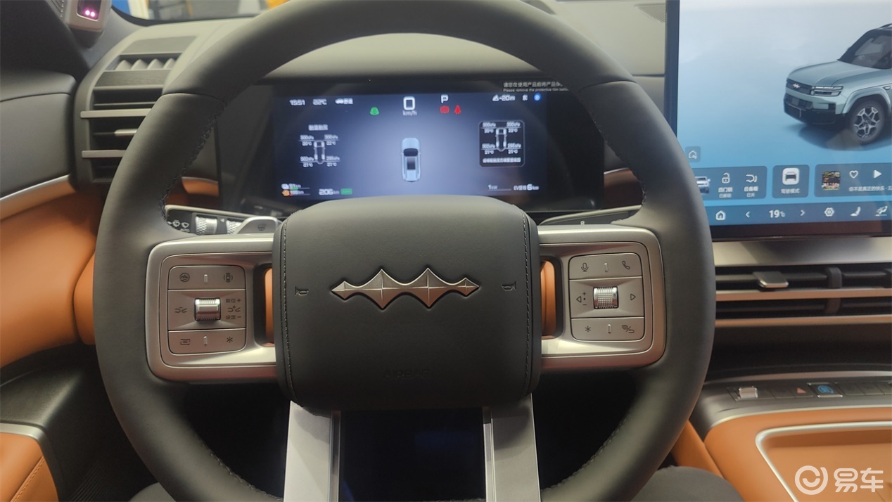 車機系統(tǒng)的交互體驗是鈦7的一大亮點。在近一年“迪系”車型中,其變化十分顯著。儀表屏底色更干凈,核心信息獲取更加便捷;中控屏布局改為主流的橫屏 + 底部Dock欄,搭配桌面橫向排列的小卡片,觀感簡潔。Dlink系統(tǒng)的流暢性和手感都有所提升,幀率高,跟手程度好。不過,儀表和HUD的動效設計在視覺上缺乏高級感,中控屏的3D車模存在鋸齒邊緣,仍有優(yōu)化空間。比亞迪保留了大量實體控件的傳統(tǒng)值得稱贊。方向盤兩側(cè)、主駕車門內(nèi)側(cè)、頂棚等部位保留了眾多快捷功能實體按鍵,手感經(jīng)過優(yōu)化,有很好的韌勁,且根據(jù)不同功能交互有針對性設計,例如方向盤左右兩側(cè)巡航車速調(diào)節(jié)采用上下?lián)軛U,音量調(diào)節(jié)采用外觀相似的滾輪,十分人性化。唯一不足之處在于方向盤全系只有手動四向調(diào)節(jié)。