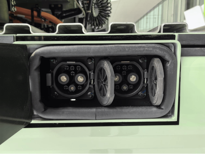 動力與續航表現是G6000E的核心競爭力。車輛搭載濰柴600.63kWh大容量動力電池,配合雙200/260kW高效電驅橋,形成“黃金動力組合”。這一配置不僅讓滿載起步、爬坡超車等操作游刃有余,更能適應干線物流、港口集疏運等復雜場景的需求。動力電池采用底置布局,均勻分布于車架兩側,既降低了車身重心以提升穩定性,又通過護板設計兼顧了防護、裝飾與空氣導流功能。實測數據顯示,600.63kWh的電池容量可充分滿足長續航需求,有效緩解用戶的里程焦慮。