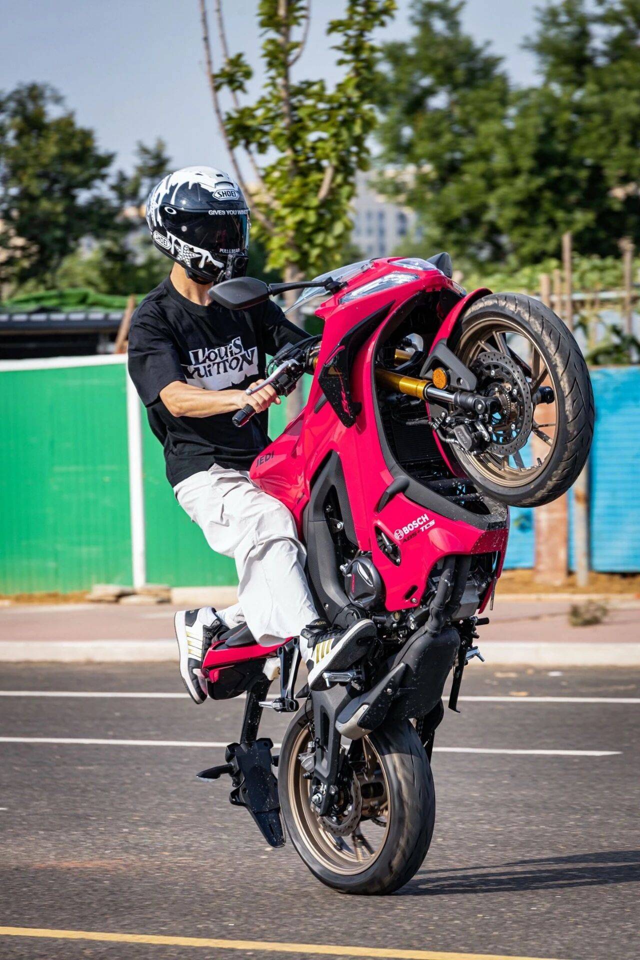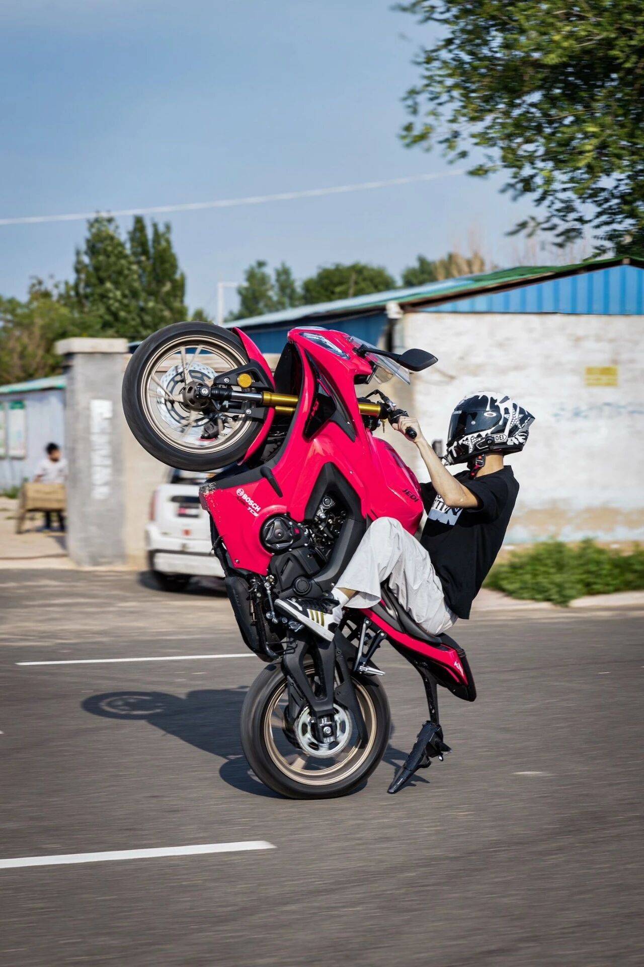 需要特別強調的是,視頻中展示的翹頭動作屬于極限駕駛范疇。即便在封閉測試場地,此類操作仍伴隨較高風險——輪胎抓地力突變、重心急劇轉移都可能導致車輛失控,輕則造成車身部件損壞,重則引發騎手摔車受傷。根據道路交通安全法規,在公共道路進行此類危險動作更將面臨法律追責。