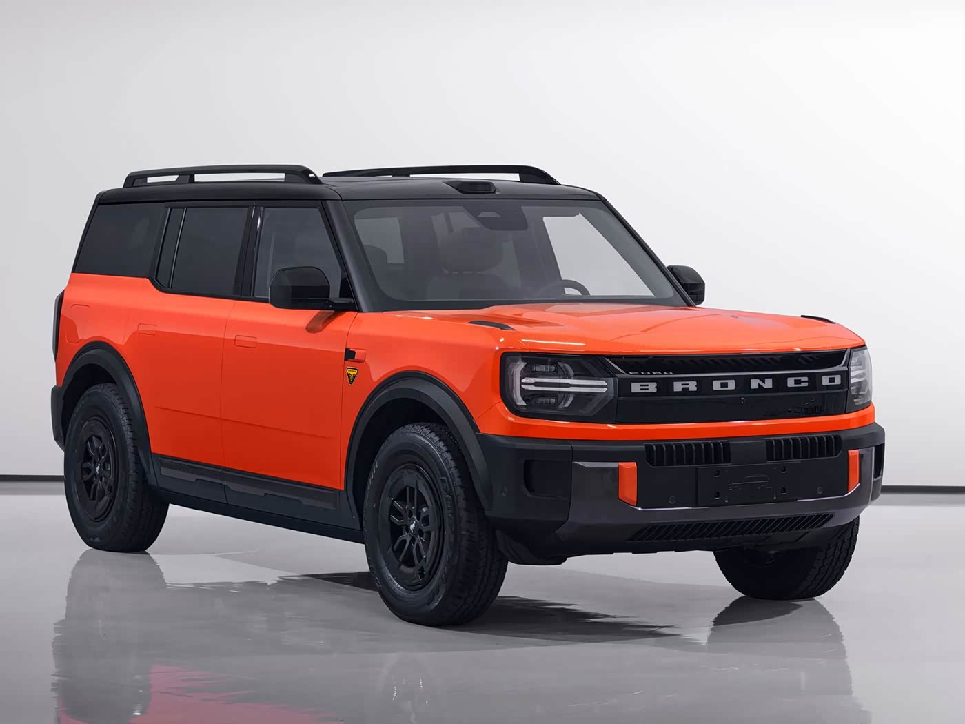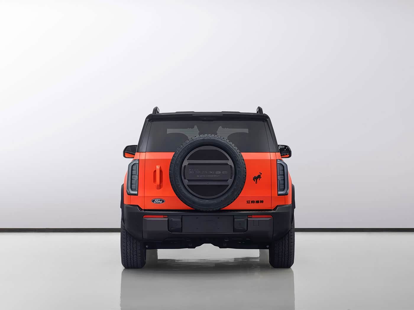 外觀方面,福特智趣烈馬采用方正的“方盒子”造型,前臉設計融合了硬派SUV的粗獷與城市SUV的精致。非封閉式格柵搭配粗壯的保險杠,營造出強烈的氣場,中央大尺寸LOGO與兩側辨識度極高的車燈形成視覺焦點。高配車型車頂配備激光雷達,進一步強化科技感。車身側面線條簡潔,隱藏式門把手的設計在硬派SUV中較為少見,卻為整車增添了一絲現代氣息。車長達到5025mm,軸距為2950mm,尺寸超越坦克400新能源,僅略小于坦克500新能源。尾部設計延續硬派風格,外掛備胎、側開式尾門與豎向尾燈的組合,凸顯其越野屬性。