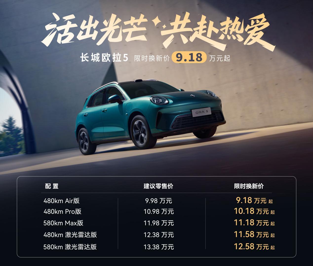 長城歐拉5近日以“求真”理念正式登陸市場,推出五款不同配置車型,限時優惠價9.18萬元起售。這款新車不僅在續航方面表現亮眼,起步即達480公里,還搭載了第三代Coffee OS智能車機系統、激光雷達以及Coffee Pilot Ultra輔助駕駛系統,為用戶帶來科技感十足的駕乘體驗。即日起至2025年12月31日,購車用戶可享受九重限時優惠禮遇。