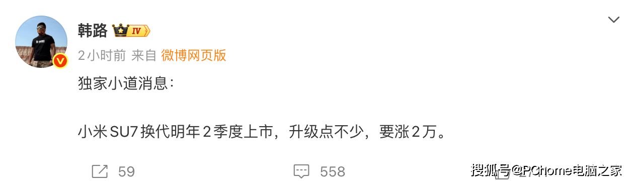 近日,汽車領域知名博主“韓路”在社交媒體上透露了一則關于小米SU7換代車型的獨家消息,引發廣泛關注。據悉,這款備受期待的新車計劃于2026年第二季度正式上市,且在價格方面將有調整,起售價預計從現款的21.59萬元上漲至23.59萬元,漲幅達2萬元。
