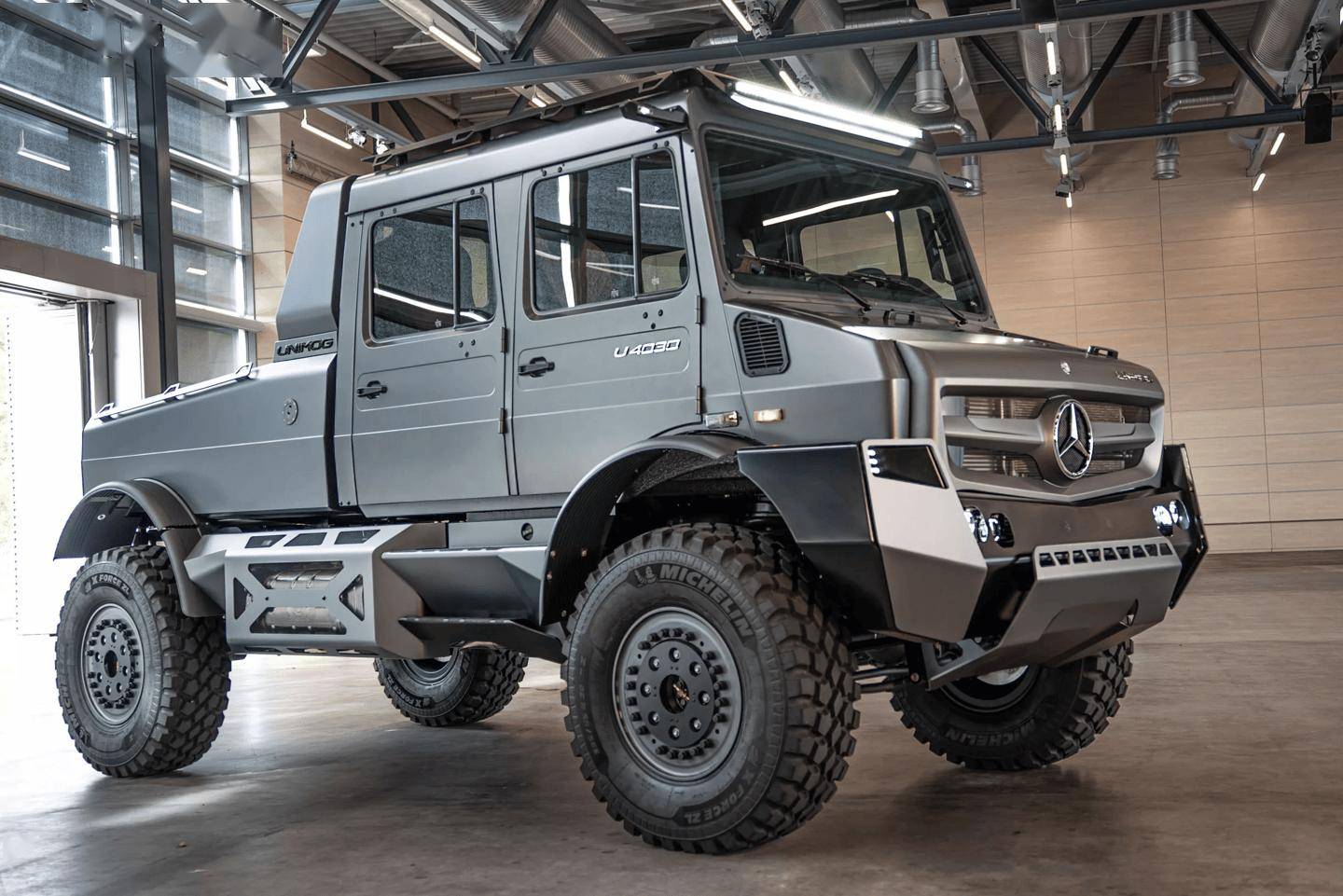動力系統是此次升級的核心亮點。新車搭載的7.7L OM936直列六缸柴油發動機取代了原有四缸機型,最大功率從170kW提升至220kW。奔馳工程師表示,這套動力系統在增強牽引力的同時,仍保持了烏尼莫克標志性的極限通過能力,無論是陡坡攀爬還是泥濘路段都能從容應對。傳動系統保留了標志性的三把差速鎖與柔性車架,配合輪邊減速橋,確保越野性能不打折扣。