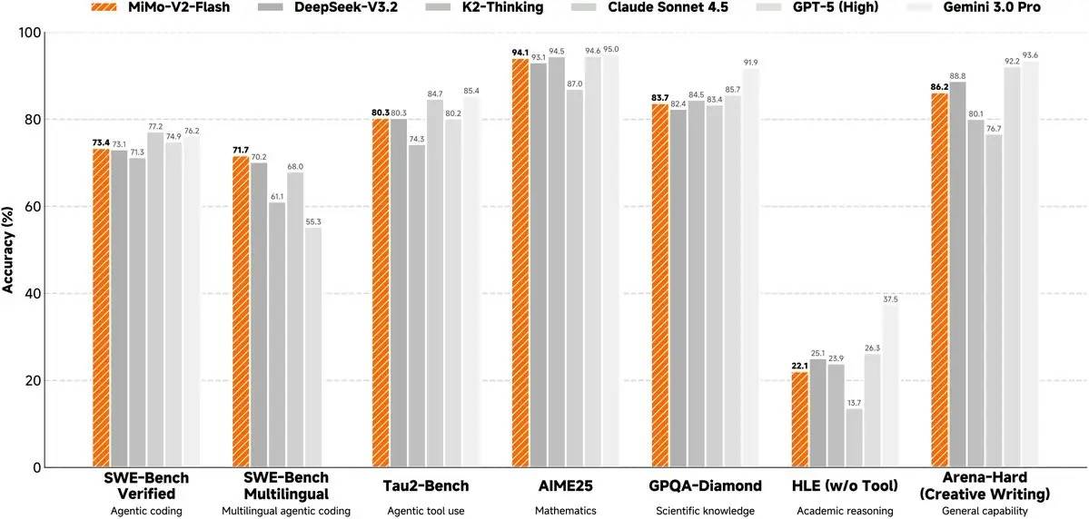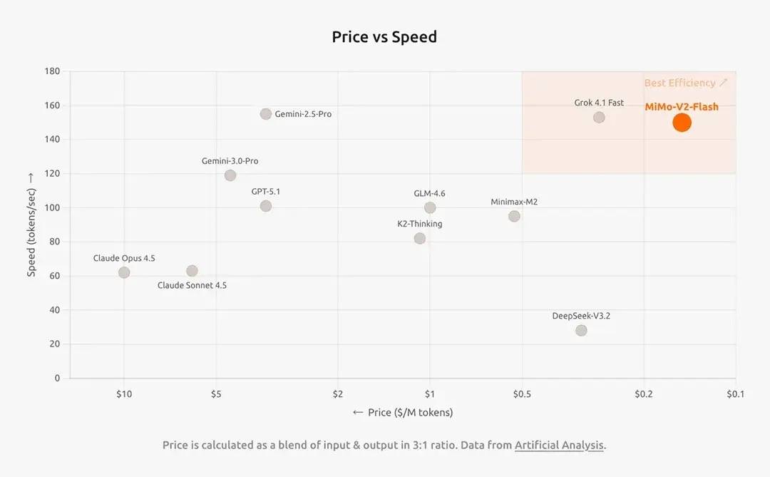 小米團隊明確將該模型定位為Agent基座,核心優化方向聚焦三大領域:強化代碼與工具調用能力以提升智能體交互效率;通過混合注意力機制突破推理速度瓶頸;探索后訓練范式以激發強化學習潛能。官方數據顯示,MiMo-V2-Flash在SWE-Bench Multilingual測試中超越GPT-5等閉源模型,代碼能力躋身全球開源模型前列。更引人注目的是其成本優勢——推理價格僅為Claude Sonnet 4.5的2.5%,生成速度卻達2倍,API定價輸入0.7元/百萬tokens、輸出2.1元/百萬tokens,形成顯著市場競爭力。