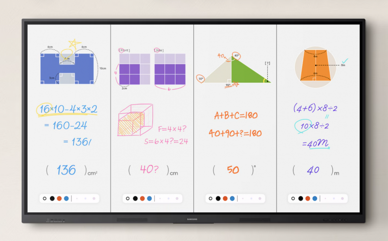 書寫交互功能的突破性創新是三星WAF系列電子白板“協作力”的直觀體現。其內置的“注釋”功能支持用戶在任意界面——無論是靜態文檔、動態視頻還是網頁內容之上進行即時標注與筆記記錄,所思所想即刻呈現,提升了會議的互動質量。配備的兩用筆無需復雜設置,通過簡單切換筆尖即可實現不同顏色與筆跡風格的書寫,讓演示過程流暢而專業。更值得稱道的是,升級后的“筆記”應用支持單頁至多四個獨立書寫區域,多人可在各自分區同步創作、批注,無論是設計團隊的頭腦風暴,還是教育機構的課堂互動,都能實現觀點的高效碰撞與呈現;多點觸屏功能至多可同時提供40個觸屏點,為創意迸發、知識傳遞構建了具有趣味性與參與感的交互場景。