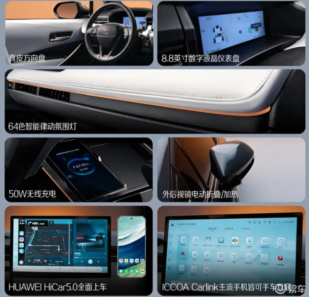 內(nèi)飾方面的升級力度較大,雷凌L采用了貫穿式空調(diào)出風(fēng)口設(shè)計(jì),配備8.8英寸液晶儀表盤和12.9英寸中控屏,搭載8155P車規(guī)級芯片。車內(nèi)實(shí)體按鍵大幅減少,科技感明顯提升。新車支持HUAWEI HiCar 5.0和Carlink互聯(lián)功能,滿足用戶對智能出行的需求。配置方面,雷凌L還提供了64色律動氛圍燈、真皮方向盤、50W無線充電面板等高端配置,進(jìn)一步提升了車內(nèi)品質(zhì)感。