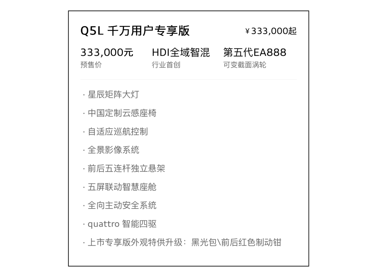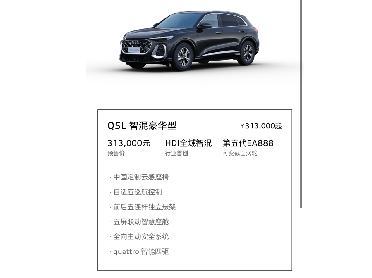有市場分析指出,參考此前奧迪A5L的定價策略,全新Q5L正式上市時的價格可能進一步下探,預計會留出1.5萬元左右的調整空間,實際售價有望進入20萬元區間。這一策略或將進一步增強Q5L在豪華中型SUV市場的競爭力,吸引更多消費者的關注。