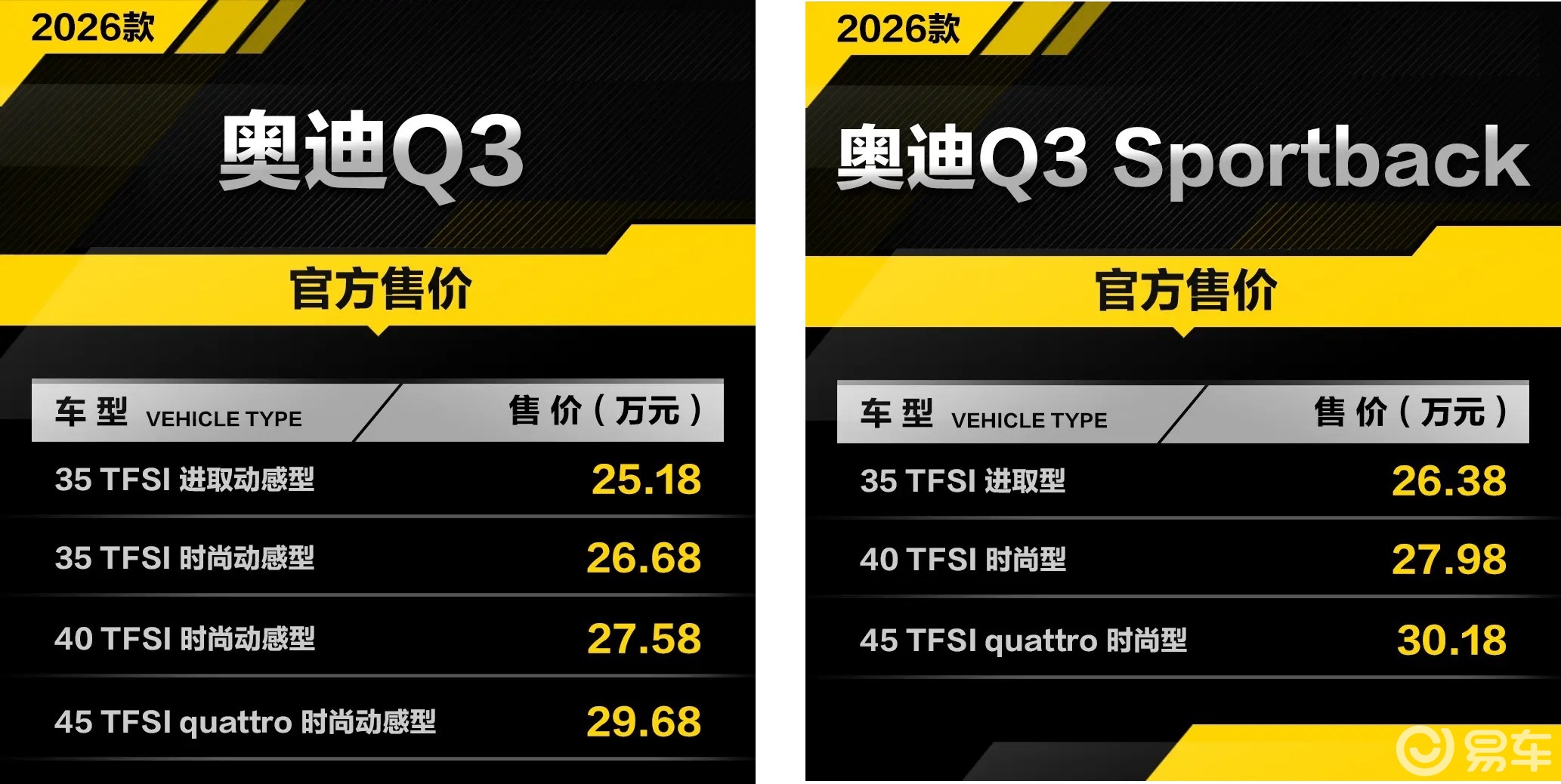 2026款奧迪Q3家族登場,配置升級駕控優,空間科技有短板誰適合買?