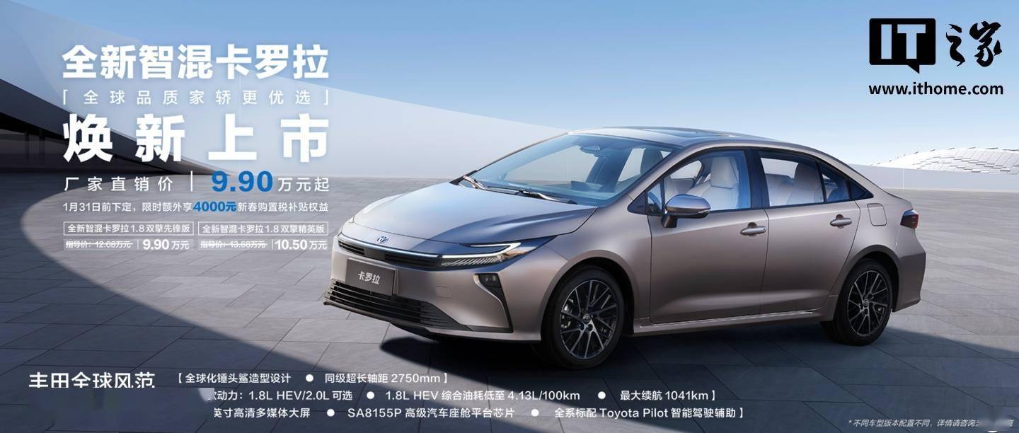 一汽豐田旗下中期改款卡羅拉正式登陸市場,此次共推出四款配置版本,官方指導價區間為12.68萬至14.98萬元,通過廠家直銷渠道購車可享9.90萬至11.80萬元的優惠價格。新車在延續經典家轎定位的同時,通過外觀、內飾、動力及安全配置的全面升級,展現出更具競爭力的產品實力。