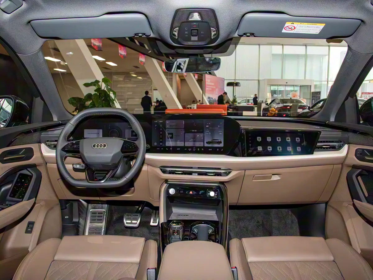 內飾方面,全新奧迪Q5L延續了家族式設計風格,注重科技感與豪華感的融合。三幅式平底多功能方向盤、滑塊式換擋機構以及曲面雙聯屏的組合,提升了駕駛艙的現代感。副駕娛樂屏的加入,為乘客提供了更豐富的娛樂體驗。整體內飾布局簡潔大方,材質選擇和做工細節均體現了奧迪一貫的高品質標準。