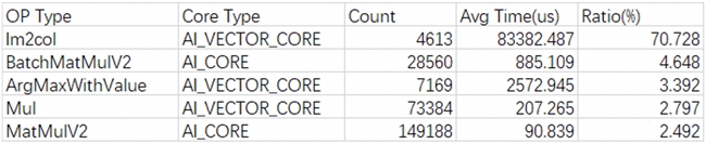 通過模型運行時打印算子運行時長占比,發現 Im2col 占總運行時長最高,高達 70.73%,故需要分析并消減該算子的調用。