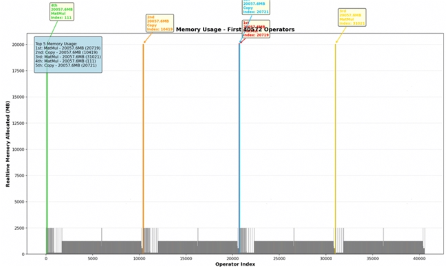 對求和的左側部分進行分塊操作,并調整合適的分塊尺寸(chunk_size),成功降低了內存的峰值。我們后續又定位到其他可能導致內存溢出的位置,分別是: