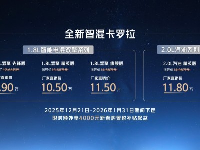 一汽豐田全新智混卡羅拉近日正式登陸市場,以“全球好品質 中國新家轎”為定位推出四款車型,廠商指導價區間為9.9萬元至11.8萬元。即日起至1月31日,消費者訂車可額外享受4000元新春購置稅補貼,為家庭用戶提供更具吸引力的購車方案。這款歷經59年進化、全球累計銷量突破5000萬輛的經典車型,此次以全面升級的產品力重新定義家轎市場價值標桿。