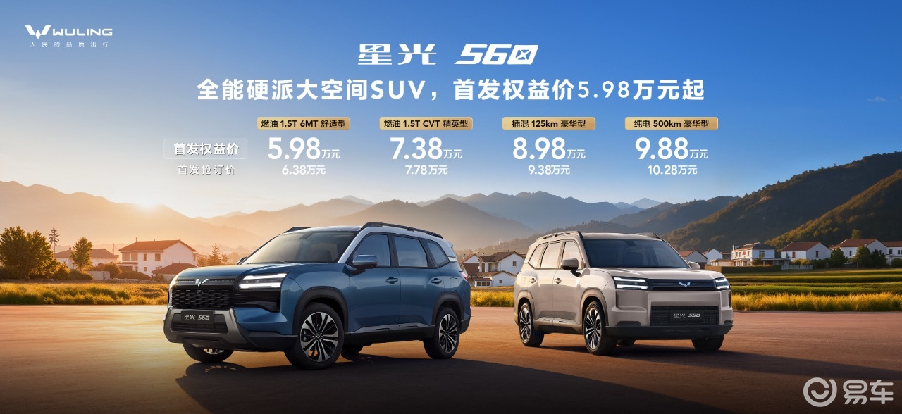 五菱品牌即將推出一款全新緊湊型SUV——五菱星光560,目前該車(chē)型已完成亮相并開(kāi)啟預(yù)訂,預(yù)計(jì)于2026年1月正式上市,具體日期尚未公布。此次共推出4款車(chē)型,涵蓋燃油、插混、純電三種動(dòng)力形式,原首發(fā)搶訂價(jià)區(qū)間為6.38萬(wàn)-10.28萬(wàn)元,首發(fā)權(quán)益價(jià)則為5.98萬(wàn)-9.88萬(wàn)元。