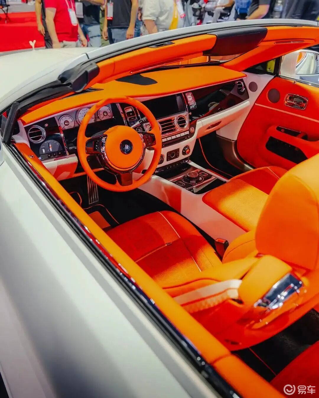 座艙空間延續外飾的撞色哲學,白色與橙色皮革的大面積運用徹底打破勞斯萊斯傳統內飾的沉穩基調。細膩皮質與鮮明色彩的碰撞,不僅帶來強烈的視覺沖擊,更通過材質觸感的差異化處理營造出多層次感官體驗。雖然目前尚未確認該配色方案屬于Venuum改裝還是原廠Bespoke定制服務,但這種突破常規的搭配邏輯,顯然與外觀設計的張揚個性形成完美呼應。