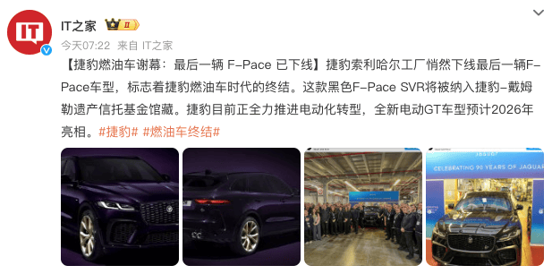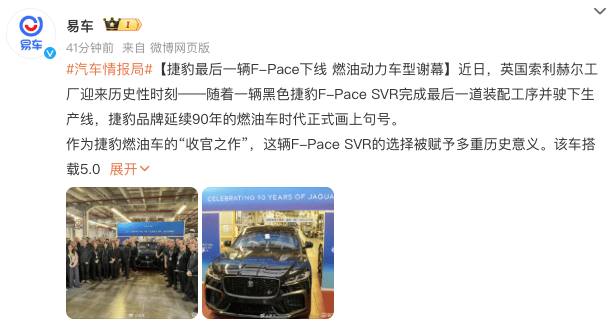最后一輛捷豹F-PACE SVR下線 燃油時代落幕 電動新篇將啟