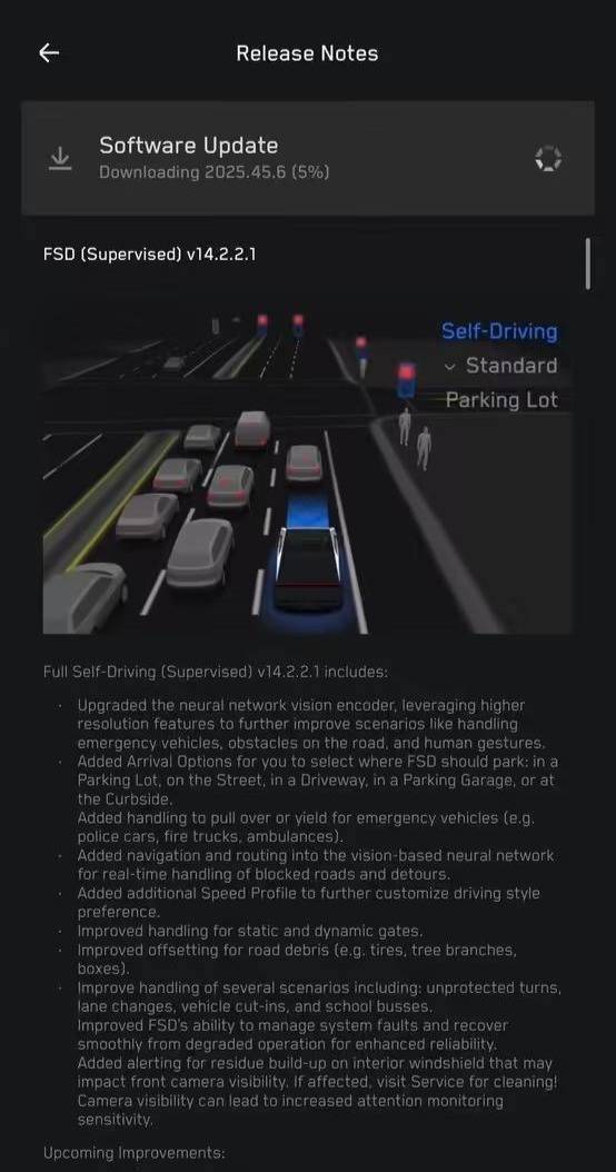 技術團隊在圣誕假期期間持續推進系統迭代。FSD(監督版)v14.2.2版本向用戶推送僅一天后,人工智能部門便緊急上線了v14.2.2.1優化版本。新版本重點提升了復雜環境下的決策能力,特別是在雨天、模糊路標等場景中的表現。
